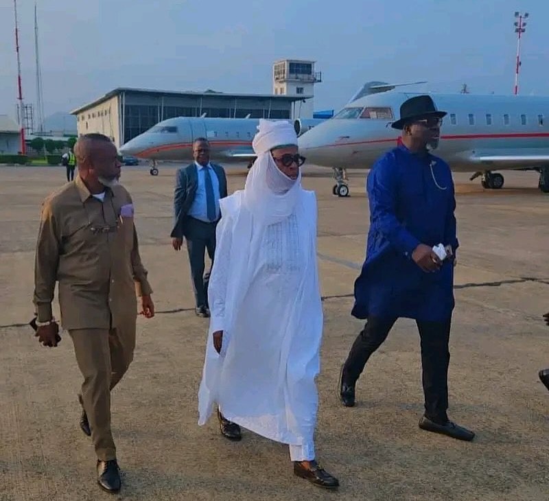 Former Minister of Transport, Rotimi Amaechi, adorns Northern attire to the funeral of his former boss, Muhammad Buhari, in Daura, Katsina state.