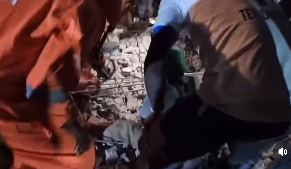 A video from the scene shows responders working tirelessly to rescue someone trapped in the rubble.