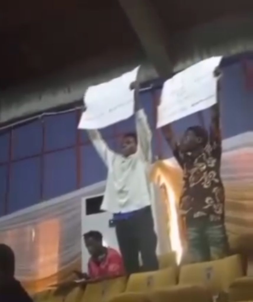 In videos circulated online, the students were seen holding placards and chanting: “Minister Wike, we demand you compensate the people whose houses you demolished.” The protest momentarily disrupted the event before security operatives intervened.