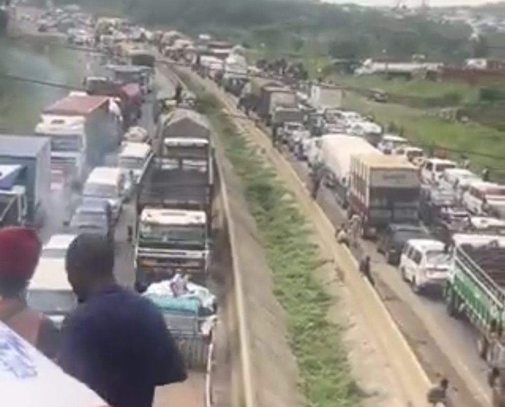 Heavy gridlock has brought traffic to a standstill on the Lagos-Ibadan Expressway this morning, leaving commuters stranded for hours.