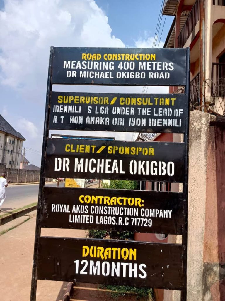 Speaking earlier, the Project Manager, Engr Obinna Akolonye of Royal Akos Construction Limited, eulogized Dr Michael Okigbo for nmarking a significant milestone towards the road infrastructure.