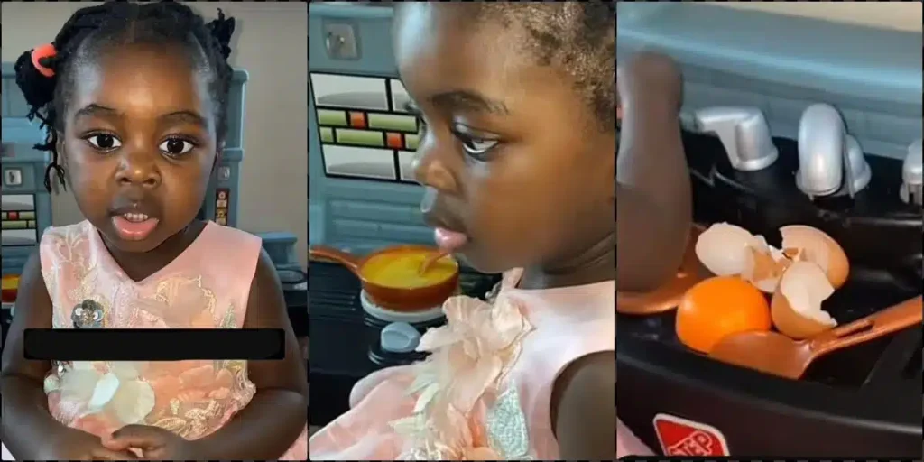 In the brief clip, the mother questioned the child about why she broke 12 eggs all at once without sticking to the fake eggs in her pretend cooking kit.