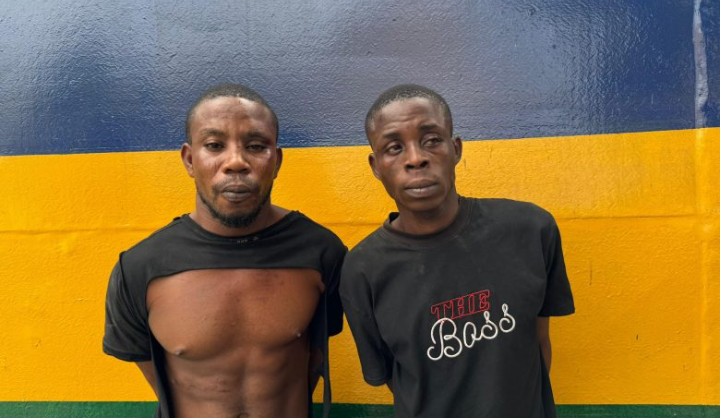 The suspects, identified as 27-year-old Agbojule Smart and 30-year-old Keleke Michael, were apprehended early Friday, January 24, 2025, while attempting to flee Lagos State.