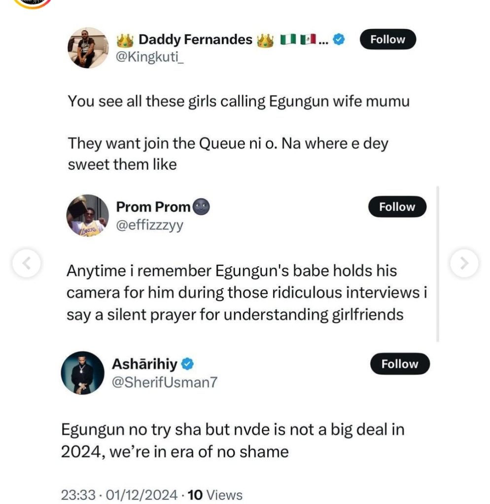 The footage surfaced shortly after Egungun’s wife publicly defended him against cheating allegations, insisting he has always been faithful.