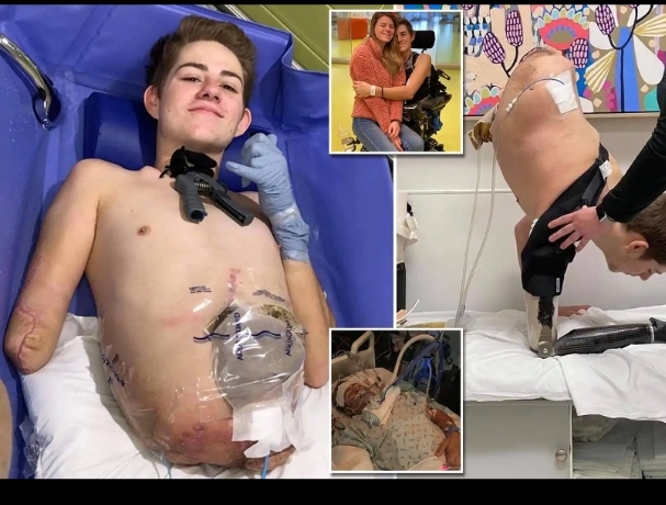 A teenager has defied the odds by surviving a horrifying forklift truck accident that left him needing urgent surgery to amputate the bottom half of his body.
